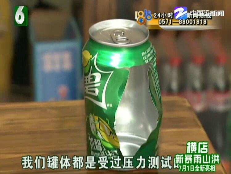 徐经理说:“放在这边自己爆炸,这样的一种情况我们没遇到过,掉到地下发生爆炸,这有很大的可能是天气热这种问题导致的,或者说撞击了导致饮料爆炸,和罐体质量厚薄没关系,罐体都是受过压力测试的,这个是可以容纳饮料里面所有压力的,不然罐子就是不合格了。”